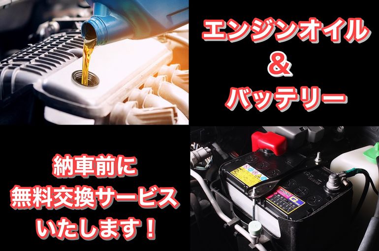 ご成約いただきましたお車のバッテリーを新品に交換、オイル交換もサービスいたします!
